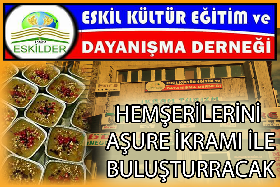 Eskil Kültür Eğitim ve Dayanışma Derneği tarafından Muharrem ayı dolayısıyla aşure ikramı yapılacak.