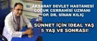 Sünnet İçin İdeal Yaş: 5 Yaş Ve Sonrası!Aksaray Devlet Hastanesi Çocuk Cerrahisi Uzmanı Op. Dr. Sinan Kılıç, bu yaz sünnet düşünen anne ve babaları, sünnet konusunda uyardı.12 Mayıs 2016 Perşembe 13:45