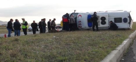 Edinilen bilgiye göre, Konya Yolu’nda bir vaka ihbarı alan 112 Acil Yardım ekipleri Aksaray’dan yola çıktı. Ramazan Arman (22) idaresindeki 68 EU 318 plakalı ambulans, Aksaray-Konya Karayolu’nun 50’inci kilometresinde sürücünün direksiyon hakimiyetini kaybetmesi sonucu takla atarak şarampole devrildi. Kazada sürücü ile ambulanstaki sağlık görevlileri Şerife Koç (22) ve Çiğdem Zeybek (26) yaralandı. Olay yerine gelen bir başka 112 Acil Yardım ekibi tarafından ilk müdahaleleri olay yerinde yapılan sağlık görevlileri, daha sonra Aksaray Devlet Hastanesi’ne kaldırıldı. Burada tedavi altına alınan sağlık görevlilerinin hayati tehlikelerinin bulunmadığı öğrenildi.