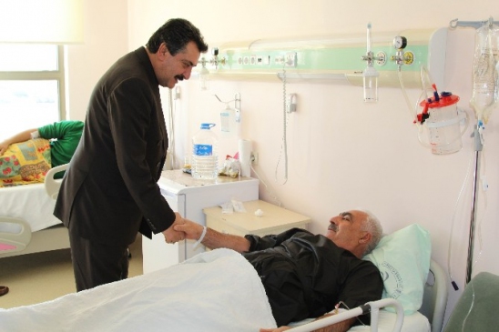 Devlet Hastanesindeki tüm servislerde yatan hastaları ziyaret ederek, geçmiş olsun dileklerini ileten Başkan Kale, hastanedeki hastalarla bir süre sohbet etti. Hastalara çeşitli konularda tavsiyelerde bulunan Başkan Kale, hastaların çok iyi şartlarda bakım ve tedavi gördüğünü kaydetti.