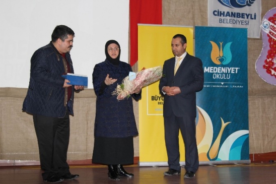 Seminerin ardından Cihanbeyli Belediye Başkan Yardımcısı Mehmet Satılmış tarafından Belediye Başkanı Mehmet Kale adına Şengül Yiğit’e çeşitli hediyeler takdim etti.