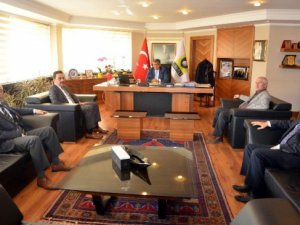 Ereğli’de yapımı süren Gençlik Merkezi başta olmak üzere 2015 yılı yatırım programında yer alan proje çalışmalarını yerinde görmek ve bilgi almak amacıyla Ereğli’ye gelen Konya Gençlik Hizmetleri ve Spor İl Müdürü Ömer Ersöz, Ereğli İlçe Müdürü Cumali Özince ile birlikte Belediye Başkanı Özkan Özgüven’i makamında ziyaret etti. Konya Gençlik Hizmetleri ve Spor İl Müdürü Ömer Ersöz, Ereğli Atatürk Stadyumunun belediyeye devredilmesi konusunda Başkan Özkan Özgüven ile görüş alışverişinde bulundu.