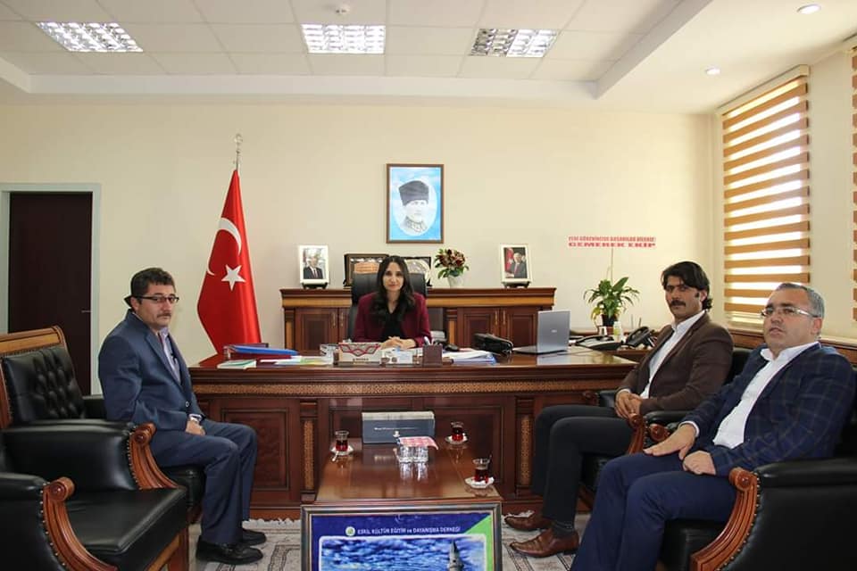 Dernek Başkanı Süleyman Altan ve yönetim Kurulu Üyeleri Mustafa Bozdağ, Yaşar Başpınar ve Halil İbrahim Ünlü’nün katıldığı görüşmede, Dernek Başkanı Süleyman Altan Kaymakam Kübra Karaalioğlu’na hayırlı olsun dileklerini ileterek, günün anısına Eskil Ulu camii halı işlemeli tablo hediye etti.