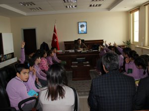 Kariyer planlaması ve mesleki tanıtım çerçevesinde gerçekleşen ziyarette Eşmekaya İlkokulu öğrencileri Kaymakamlık Mesleği ve ilçe yönetimi hakkında Kaymakam Mustafa İlhan’dan bilgi aldılar.