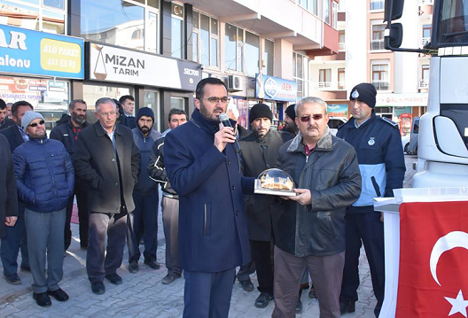 Eskil Belediye Başkanı Niyazi ALÇAY, ‘’ Biz Müslümanlar olarak yeryüzündeki mazlumların yanında olmaya inanan insanlarız. Şarktaki müminin ayağına diken battığında, garptaki müminin içinin sızlamasına inanan insanlarız. Çevremizdeki Müslümanlara yapılan zulümleri hepimiz görüyoruz. Bunun en bariz örneği Suriye’deki kardeşlerimiz, acımasız işkencelere maruz kalıyorlar. Bizler onların bu zor günlerinde yanındayız olmaya da devam edeceğiz. Bu zor günlerinde en kötü şartlarda yaşam mücadelesi veriyorlar. Dünyaya bir kez daha birlik ve beraberliğimizi göstermeliyiz. Böyle anlamlı kampanyaya öncü olan İHH Başkanı Sayın Önder ÖZKAN’a, Gönül Bağı Derneği Başkanı Hacı Veli UZUN’a dernek yetkililerine ve yardımlarını esirgemeyen eskilli kardeşlerime sonsuz teşekkür ediyorum Eskil Belediyesi ve sahsım olarak bu kampanyaların destekçisiyiz.’’ Diyerek sözlerine son verdi ardından İHH Başkanı Önder ÖZKAN tarafından Belediye Başkanı Niyazi ALÇAY ve Gönülbağı Derneği başkanı Hacı Veli UZUN’a desteklerinden dolayı günün anısına plaket takdim etti.