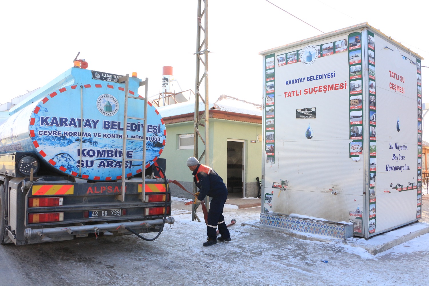 Karatay Belediyesi tarafından, Büyükşehir Yasasıyla birlikte Karatay'a bağlanan belde ve köy statüsünde olan mahallelere tatlı su dağıtımı yapılıyor