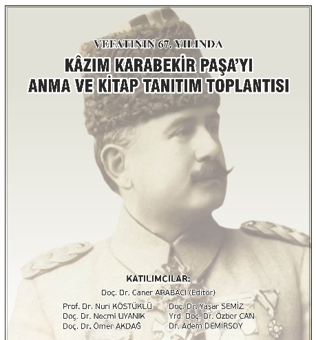Kitabın editörü Doç. Dr. Caner Arabacı, basılan ve basılmayanlarla birlikte, altmış sekiz eseri kaleme alan Kazım Karabekir Paşa’nın, tarihimizin en çok eser vermiş generali konumunda olduğunu ve Kazım Karabekir Paşa’nın değişik yönleriyle ele alınacağını kaydetti.