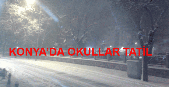 Konya'da etkili olan kar yağışı nedeniyle kent merkezi ile bazı ilçelerde okullar yarın tatil edildi.  Konya Valiliğinden yapılan açıklamada, kar yağışı nedeniyle kent merkezi ile Güneysınır ve Akören ilçelerinde de ilk ve orta dereceli okulların 12 Şubat Perşembe tatil edildiği bildirildi.  Kadınhanı, Sarayönü, Taşkent, Yunak, Derbent, Hadim, Derebucak, Çeltik, Bozkır, Ahırlı, Yalıhüyük, Altınekin, Doğanhisar ve Seydişehir'de ilk ve orta dereceli okulların yarın tatil edildiği daha önce duyurulmuştu