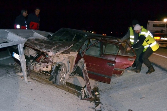 Kulu'da kontrolden çıkan otomobilin refüjdeki bariyerlere çarpması sonucu 1 kişi ağır yaralandı.