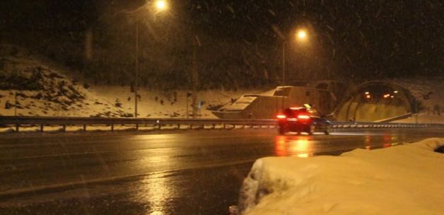 İstanbul-Ankara karayolunun Bolu Dağı kesiminde akşam saatlerinde başlayan kar yağışı şiddetini arttırıyor. Bolu Dağı Tüneli’nin İstanbul ve Ankara istikametinde yağan kar yağışı sonrasında sürücüler hız keserken, kar yağışının ilerleyen saatlerde devam etmesi bekleniyor. Karayolları ekipleri, Bolu Dağı Tüneli’nin girişinde hazır bekletiliyor. Ekipler kar yağışının başlamasıyla birlikte tuzlama çalışması yaparken, polis ekipleri de Bolu Dağı Tüneli girişinde sürücüleri uyarıyor.