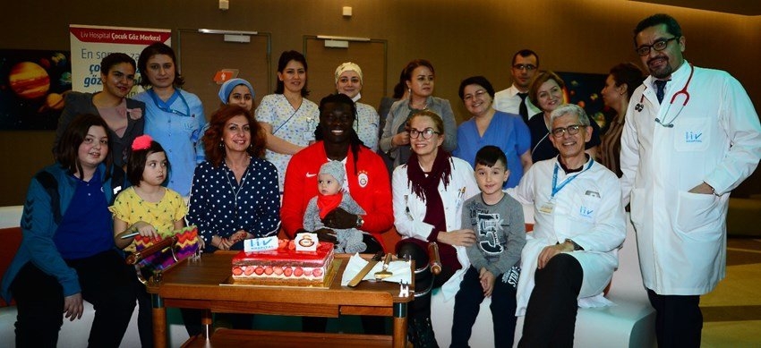 Onlara imzalı forma ve atkı hediye eden Bafetimbi Gomis hastanedeki diğer çocukları da kırmayarak hatıra fotoğrafı çektirdi.