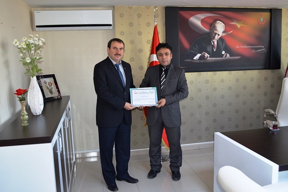 Aksaray Kamu Hastaneleri Birliği Genel Sekreteri Op. Dr. Himmet DURGUT; 13 yıldır aksaray Devlet Hastanesi Müdürlüğü ve Aksaray Kamu Hastaneleri Birliğinde Mali Hizmetler Başkanlığı yapan Sait ÇELEBİ’ ye yapmış olduğu hizmetlerden dolayı teşekkür belgesi verdi.
