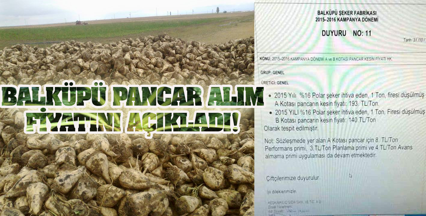 Bölge çiftçimizin Alım merkezi olan Balküpü şeker fabrikası 2015 yılında uygulanacak pancar alım fiyatını belirledi.
