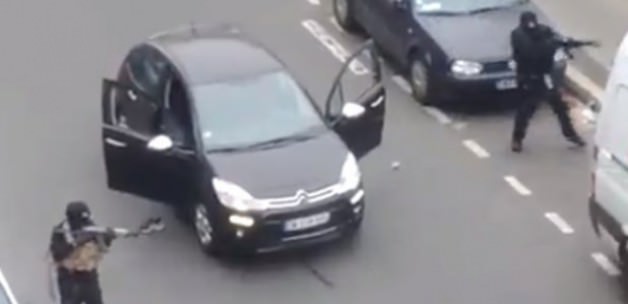 Saldırı anının bir bölümü amatör kamera tarafından kaydedilirken görüntülerde, Charlei Hebdo dergisine saldıranların çevreye ateş açtığı görülüyor. Görüntülere, bu sırada yaralanan bir polis memurunun yere düştüğü, daha sonra saldırganların polise yakın mesafeden uzun namlulu silahla ateş açtığı yansıyor. Saldırganlar olay yerinde bulunan siyah bir araca binerek olay yerinden uzaklaşıyor.