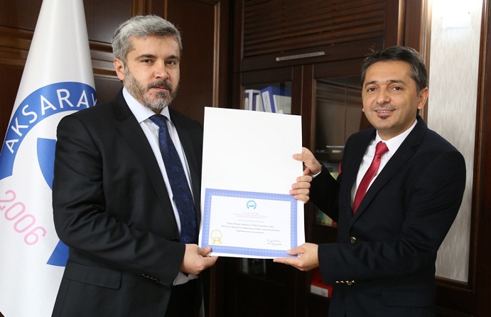 Yapılan kısa açıklamaların hemen ardından Rektör Şahin, Doç. Algı’ya “Teşekkür Beratı” takdim etti.