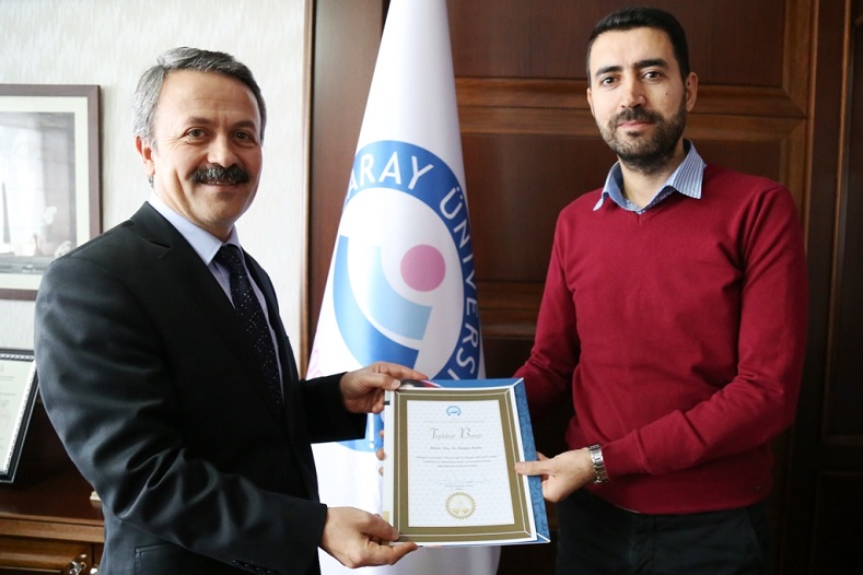 ASÜ Sabire Yazıcı Fen Edebiyat Fakültesi Fizik Bölümü Öğretim Üyelerinden Doç. Dr. Engin Deligöz ve Doç. Dr. Sezgin Aydın, Biyoteknoloji ve Moleküler Biyoloji Bölümü Öğretim Üyesi Doç. Dr. Fatih Algı ve Eğitim Fakültesi Fen Bilgisi Öğretmenliği Bölümü Öğretim Üyesi Doç. Dr. Tuncay Tunç’u makamında ağırlayan Rektör Acar, böylesi önemli bir başarıya imza attıkları için akademisyenleri kutladı. Listede ASÜ’lü 4 akademisyenin yer almasının son derece önemli olduğunu ifade eden Acar, “Sayın hocalarımızın ne denli çalışkan ve üretken olduklarını bizler biliyoruz. Bunun, bağımsız bir kuruluş tarafından da onaylanması önemli bir gurur kaynağıdır. Sayın Hocalarımı tebrik ediyor, başarılarının devamını diliyorum” dedi. Yapılan bu kısa açıklamanın ardından ASÜ Rektörü, akademisyenlere beratlarını sundu.