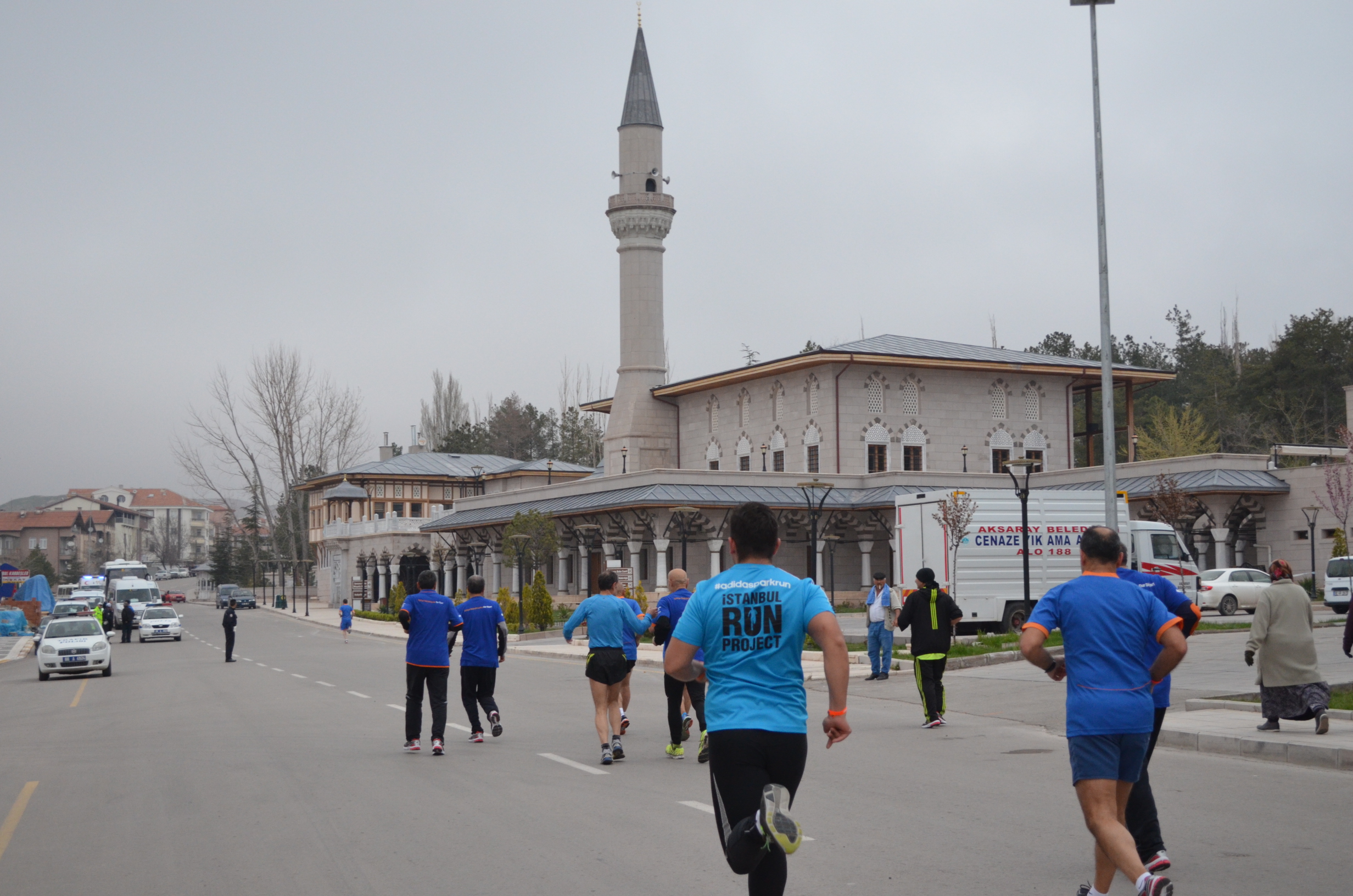 Saat 07.30’da Aksaray Kılıçaslan parkından meşale yakıldıktan sonra sporcular tekrar koşmaya başladılar. Somuncu baba Külliyesinden Aksaray il Merkezinden Aksaraylıların yoğun ilgileri ve meraklı bakışları içerisinde E-90 karayoluna çıktılar.