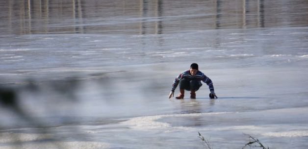 Tunca Nehri'nin yatağına yakın tarlalarda taşkın nedeniyle biriken sular da buz tuttu. Buz pistini andıran tarlalarda vatandaşlar kayarak eğlendi.