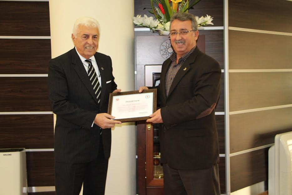 Konuşmaların ardından Türkiye Muhtarlar Federasyonu ve Muhtarlar Derneği Genel Başkanı Ramazan Özünal Karatay Belediye Başkanı Mehmet Hançerli'ye mahalle muhtarlarına verdiği desteklerden dolayı onur belgesi takdim etti.