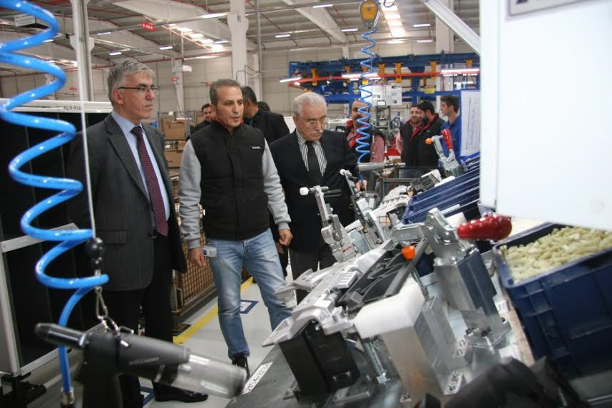 Vali Ataklı Organize Sanayi Bölge Müdürü İsmet Çağlar ile birlikte ziyaret ettiği Magna Aksaray Fabrikasında fabrika Müdürü Hasan Akbaş’tan fabrika hakkında bilgi aldı.