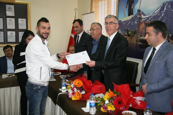 Aksaray Ticaret Borsası toplantı salonunda düzenlenen törende konuşan Vali Şeref Ataklı, girişimcilik sertifikasını alan kursiyerlerin kendi iş yerlerini kurmak istediklerinde aldıkları sertifika sayesinde devletin sağladığı 50bin TL’ye kadar hibe ve 100Bin TL’ye kadar da faizsiz kredi desteğinden yararlanabildiğini söyledi.