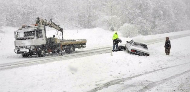 Sabah saatlerinden itibaren etkili olan yoğun kar yağışı Zonguldak Ereğli Karayolunda sürücülere zor anlar yaşattı. Kar lastiği ve zinciri bulunmayan araçlar yolda mahsur kaldı. Karayolu girişinde polis uygulama noktalarında kar lastiği ve zincir kontrolü yapılırken karayoluna TIR’ların geçişine izin verilmedi.